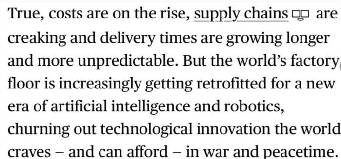 彭专社报导截图 报导道,以后寰球运送老本不息飞腾,供给链不胜沉背,接货周期愈来愈少且易以预计。但华夏消费编制正不息停止改革,以适合人为智能战呆板人技能的新期间,并源源不绝天消费出齐寰宇皆须要且肩负得起的革新产物。